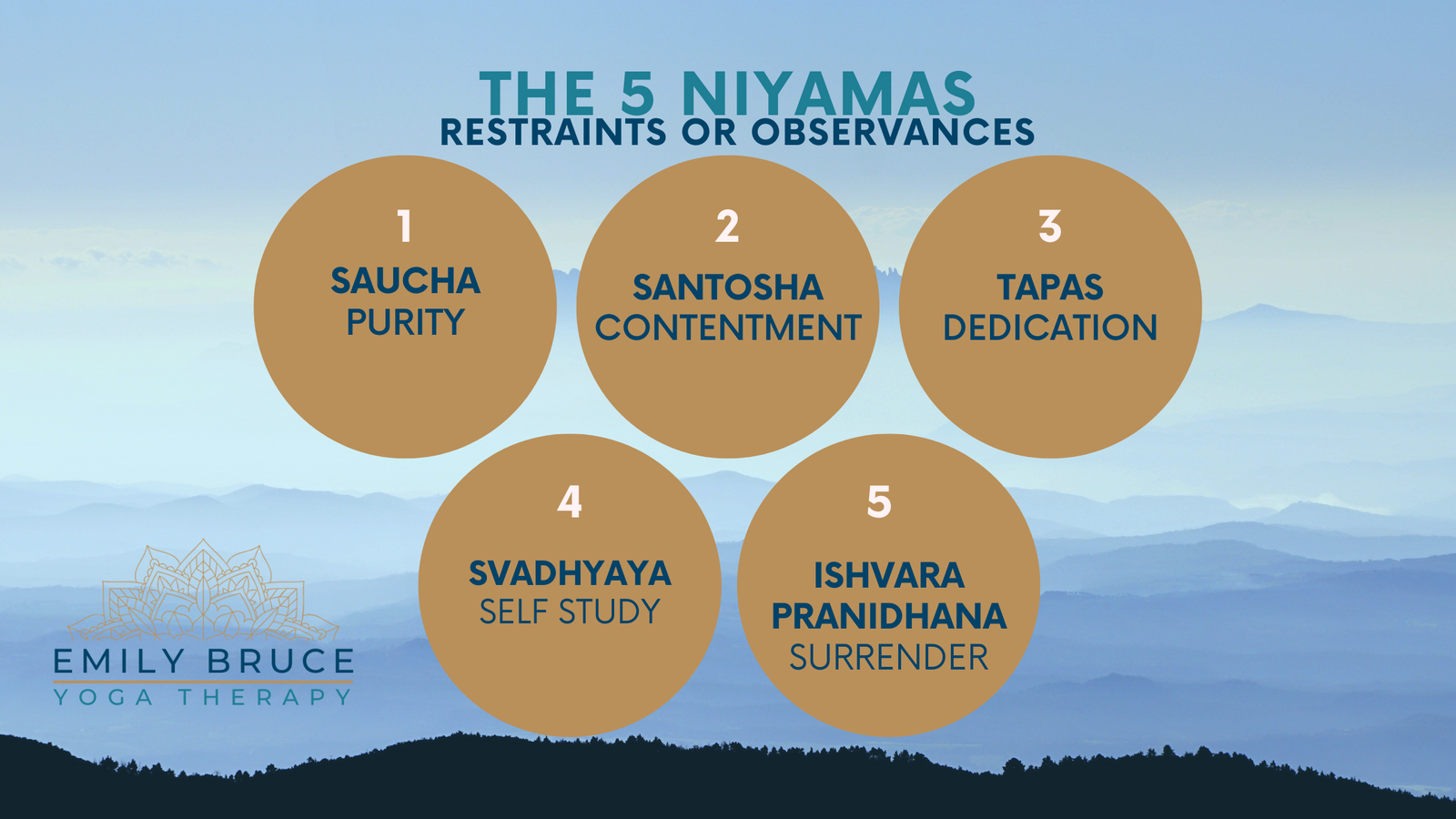 - Santosha - Contentment: Santosha reminds us to find contentment and gratitude in the present moment, regardless of external circumstances. It's about embracing life as it is, rather than constantly striving for more or longing for what we don't have. By cultivating Santosha, we cultivate inner peace and joy, regardless of the ups and downs of life.